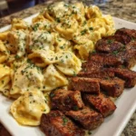 I make this dish when I want something both homey and a little indulgent. Every bite of Cajun Garlic Butter Steak with Cheesy Alfredo Tortellini tastes like a hug — spicy, buttery, and comfortingly rich. Plus, it reminds me of family dinners at my grandmother’s kitchen where garlic and butter were always in good supply. Try it, tweak it, and make it yours — you’ll find it becomes one of those recipes you come back to again and again. Cajun Garlic Butter Steak with Cheesy Alfredo Tortellini.